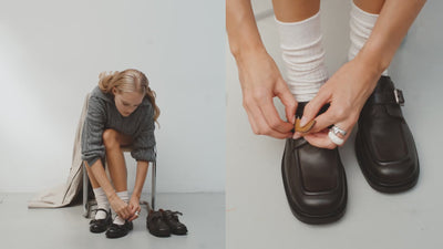 Ballerina in astrakan grigio con cinturino e occhielli metallici