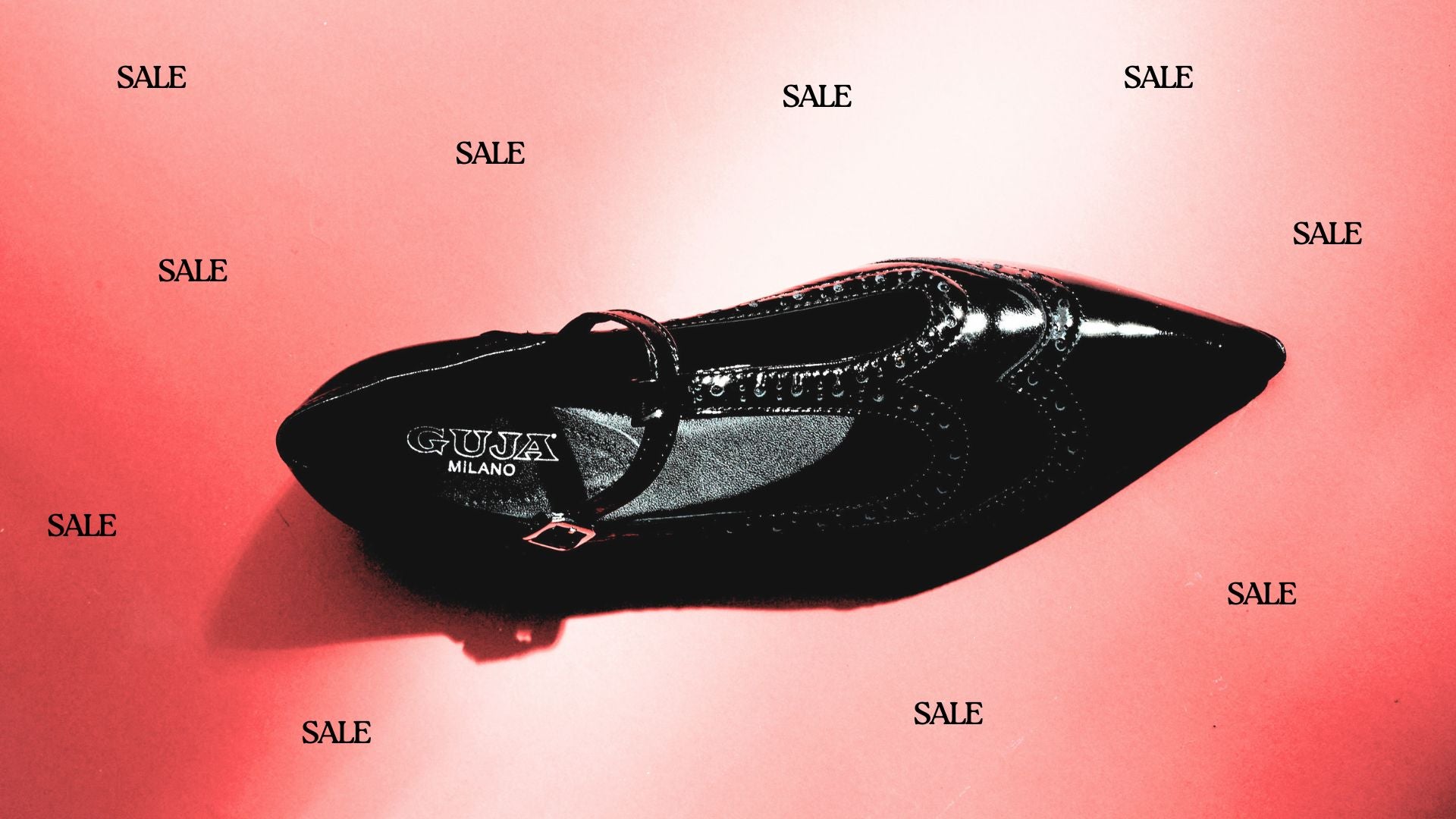 Ballerina Mary Jane in nappa nera lavorata a sacchetto e borchie tonde