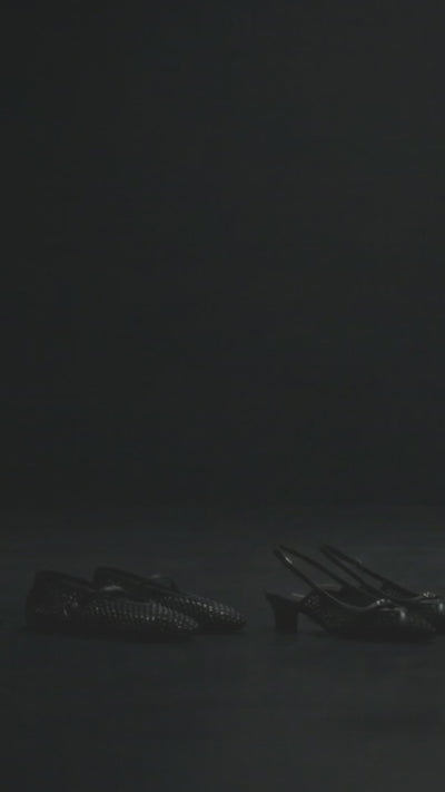 Ballerina in nappa nera lavorata sacchetto e punta quadratina