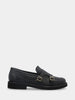 Mokassin aus schwarzem Kalbsleder mit doppelter Schnalle und genähter Schale