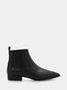 Hergestellt aus Wildleder in Dunkelbraun, zeichnet sich dieser Stiefelette durch den V-förmigen Schaft aus, der den Fuß mit einem klaren und dynamischen Schnitt umrahmt. Die Lederbänder, die die Elastikeinsätze des Schafts überziehen, fügen ein raffiniertes Detail hinzu und betonen die handwerkliche Sorgfalt des Designs. Die spitze Schuhspitze verlängert optisch die Silhouette, während der niedrige 20-mm-Absatz hervorragenden Komfort bietet. Die Gummisohle vervollständigt die Konstruktion und sorgt bei jedem Schritt für Flexibilität und Stabilität.
