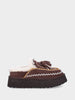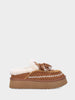Realizzato in crosta di montone beige con interno in montone naturale, questo sabot si distingue per la punta tonda e per la tomaia impreziosita da ricami e nappine che ne esaltano il fascino artigianale. La platform da 30mm in gomma microporosa garantisce comfort e leggerezza, donando un tocco moderno alla sua linea morbida e accogliente. La texture vellutata della crosta e il profilo decorativo rendono il modello perfetto per aggiungere un dettaglio raffinato ma rilassato a qualsiasi look casual chic.