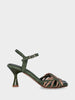 Sandalo in nappa verde con listini intrecciati e tacco a calice