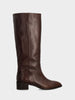 Stivale in vitello color cuoio con cerniera e tacco basso