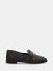 Made of smooth black calfskin, this loafer stands out for its rounded toe and the stitched tray overlapped on the upper, which enhances the silhouette with a classic and harmonious touch. The metal bit on the instep adds a sophisticated and bright accent, perfectly balanced by the clean lines of the design. The low 20mm heel ensures comfort and wearability, while the rubber sole offers flexibility and stability for elegant and practical everyday use.