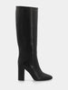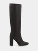 Tube boot in dark brown nappa leather with wide heel and rounded toe