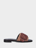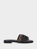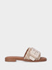 Ciabattina in vitello bianco latte e tessuto, con cinturino e fibbione decorativo
