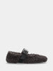 Ballerine en astrakan gris avec bride et œillets métalliques