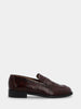 Réalisé en veau noir imprimé crocodile, il présente un bout rond et un talon bas de 20 mm qui garantit confort et portabilité au quotidien. La bride avec bord cousu à la tige met en valeur le travail artisanal, tandis que la bride en forme de bouche de lion ajoute un détail classique et iconique. La semelle en caoutchouc offre praticité et stabilité, rendant ce mocassin adapté aussi bien pour le travail que pour les loisirs.