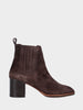 Realizzato in velour testa di moro, questo modello si distingue per la punta quadratina, che conferisce personalità e modernità alla forma. Il tacco a blocco da 70mm regala altezza e stabilità, mentre la tomaia con elastici ricoperti da fascette cucite e intagliate rivela una lavorazione complessa e di grande pregio, che unisce funzione e stile. La suola con guardolo e mezza gomma garantisce praticità e comfort, mantenendo l'estetica raffinata e la leggerezza tipica della manifattura artigianale.