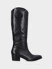 Realizzato in vitello testa di moro, questo stivale presenta una punta sfilata che slancia la forma e un gambale a tubo, simbolo del più autentico spirito western. Il tacco medio da 40mm assicura un equilibrio perfetto tra eleganza e comfort, mentre la suola in gomma garantisce leggerezza, flessibilità e stabilità. La tomaia liscia, priva di decorazioni, mette in risalto la purezza del design e la qualità artigianale del pellame, rendendo questo modello un passe-partout raffinato e attuale.