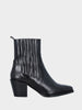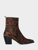 Realizzato in camoscio zebrato, questo camperos a stivaletto si distingue per la punta sfilata e per i fianchi con elastici rivestiti da listini in pelle, un dettaglio ricercato che ne valorizza la linea. Il tacco da 60mm dona slancio e stabilità, mentre la suola in gomma assicura flessibilità e comfort. La texture animalier del pellame conferisce un carattere audace ma raffinato, perfetto per chi ama reinterpretare i classici con un tocco di personalità.