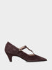 Décolleté in camoscio testa di moro con cinturini e tacco conico 50mm