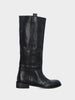 Stivale a tubo in vitello nero con fascetta laterale e tacco basso