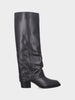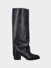 Stivale a tubo in vitello nero con ghetta risvoltata e punta stondata