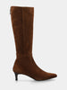Stivale in camoscio marrone con tacco 50mm e punta quadratina lunga
