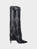 Stivale in vitello nero con ghetta e tacco stiletto