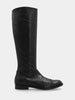 Réalisée en veau noir, cette botte présente un bout rond et un bout renforcé défini qui apporte structure et élégance. La tige et le talon d’Achille cousus et retournés mettent en valeur le savoir-faire artisanal et l’attention sartoriale au détail. Le talon bas de 20 mm rend le chaussant confortable et adapté au quotidien, tandis que la semelle en cuir lavé apporte une caractérisation matérielle raffinée et patinée dans une forme à la fois élégante et moderne.