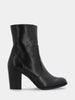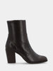 Réalisé en nappa noire, ce bottillon présente une tige non doublée avec fermeture éclair, qui apporte une douceur naturelle à la ligne et un chaussant immédiat. La silhouette est épurée et contemporaine, mise en valeur par le bloc talon de 85 mm, conçu pour offrir élancement et stabilité sans renoncer au confort quotidien. La semelle en caoutchouc garantit flexibilité, adhérence et une marche sûre, faisant de ce modèle un choix idéal pour des looks polyvalents et raffinés.
