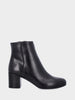 Realizzato in vitello nero, questo stivaletto si distingue per la sua linea pulita e versatile, resa contemporanea dalla punta tonda che dona armonia alla forma e delicatezza alla silhouette. Il tacco medio da 60mm slancia con equilibrio, offrendo stabilità e portabilità quotidiana, mentre la cerniera laterale rende la calzata pratica e funzionale. La suola in gomma assicura praticità e comfort anche nei movimenti più dinamici, garantendo una camminata fluida e sicura.