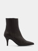 Bottine en nappa marron foncé avec talon conique et construction sacchetto