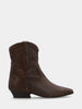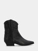 Réalisée en veau noir, cette bottines western se distingue par son bout carré et par les surpiqûres décoratives qui parcourent la tige, mettant en valeur le travail artisanal et la qualité du cuir. Les passants latéraux complètent sa silhouette avec un détail typique du style texan, pratique et plein de caractère. Le talon en queue de 20 mm garantit un port confortable et un profil affirmé, tandis que la semelle en cuir offre légèreté et flexibilité. Une chaussure qui allie tradition, confort et une élégance au goût authentique.
