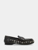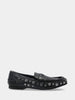 Réalisé en vernis marron foncé, il présente un bout rond et un petit talon de 10 mm qui garantit confort et praticité. La tige craquelée avec des clous ronds apporte du caractère et de la luminosité, tandis que la partie lisse met en valeur la pureté des lignes. La bride ornée d'une pièce de monnaie dans une bouche de lion enrichit la chaussure d'un détail élégant au charme rétro. La semelle en caoutchouc assure stabilité et durabilité, faisant de ce mocassin un choix idéal pour un usage quotidien chic.