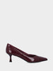 Realizzata in verlux bordeaux, presenta una punta sfilata che slancia la silhouette e un raffinato cinturino a sbieco sul collo del piede, pensato per esaltare la linea della scarpa e garantire stabilità. Il tacco a calice applicato da 50mm dona equilibrio e slancio, mentre la suola in cuoio con mezza gomma assicura resistenza e comfort.