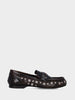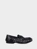 Realizzato in vernice nero, presenta una punta tonda e un tacco basso da 10mm che garantisce comfort e praticità. La tomaia craccata con borchiette tonde dona carattere e luminosità, mentre la vaschetta liscia esalta la pulizia delle linee. La mascherina con moneta nella bocca di leone arricchisce la scarpa con un dettaglio elegante e dal sapore rétro. La suola in gomma assicura stabilità e durata, rendendo questo mocassino ideale per un uso quotidiano chic.