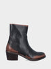 Camperos a stivaletto in vitello nero e cuoio con tacco largo e punta sfilata