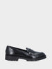 Realizzato in vitello nero, presenta una punta tonda armoniosa e una vaschetta con finitura ondulata, cucita con bordo alla tomaia per un effetto decorativo raffinato e curato. La mascherina a bocca di leone dona un carattere classico e distintivo, bilanciando perfettamente tradizione e modernità. Il tacco monoblocco da 20mm e la suola in gomma garantiscono comfort e stabilità, rendendo questo mocassino ideale per un uso quotidiano elegante e versatile.