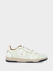 Sneaker in vitello bianco e sabbia con punta tonda e suola cucita