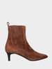 Stivaletto in camoscio color sigaro con tacco medio e guardolo