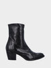 Stivaletto in vitello nero con cuciture rivoltate e tacco fasciato cuoio