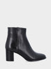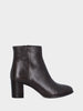 Stivaletto in vitello nero con tacco fasciato in cuoio