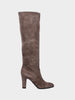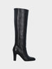 Stivale a tubo in nappa nera con tacco largo e punta tonda